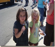 I always make my kids ride the bus on the first day of school. The teachers are extra helpful that day and they easily learn their route. But because Taylor had to be there early I drove my girls and some other neighborhood kids. We also arrived to see Reagan get off the bus!
